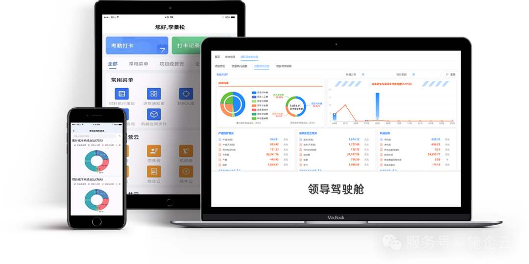 通过系统整合工程项目全生命周期数据,实现项目商机、投标、合同、预算、成本、物资采购、分包、施工、进度、质量、安全、付款、资料档案、竣工验收等项目全生命周期管理。