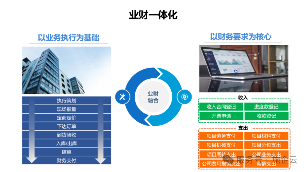 以财务管控为核心,打通业务与财务数据壁垒,实现业务结算、资金支付、台账登记、凭证生成全流程线上化贯通。通过施企云平台自动归集各项目合同履约、物资采购、劳务用工等业务数据,生成标准化财务凭证,财务人员可对业务凭证进行全量审核、批量分类。将企业的业务运营与财务管理紧密结合,实现业务与财务数据的一体化管理。