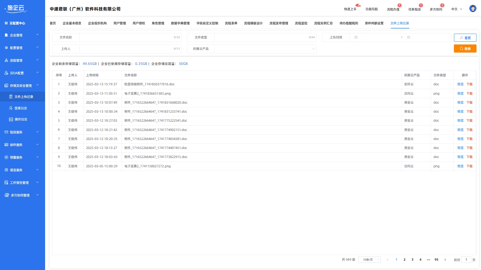 系统内各模块上传的文件和附件自动汇总,标注文件或附件的来源,按照权限可拱预览和下载